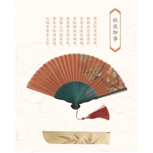 《紅樓》摺扇--秋夜即事(配以明.呂紀《桂菊山禽圖》)